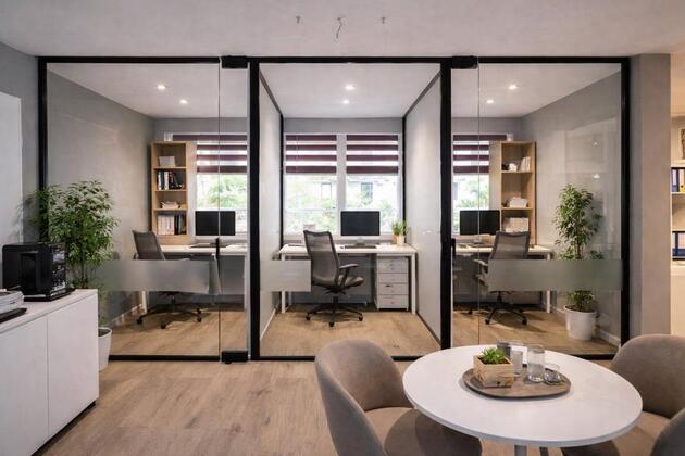 Zur Vermietung stehen 3 kleine abschließbare Büroräume in einem modernen und hellen Büro mit großer Fensterfront.